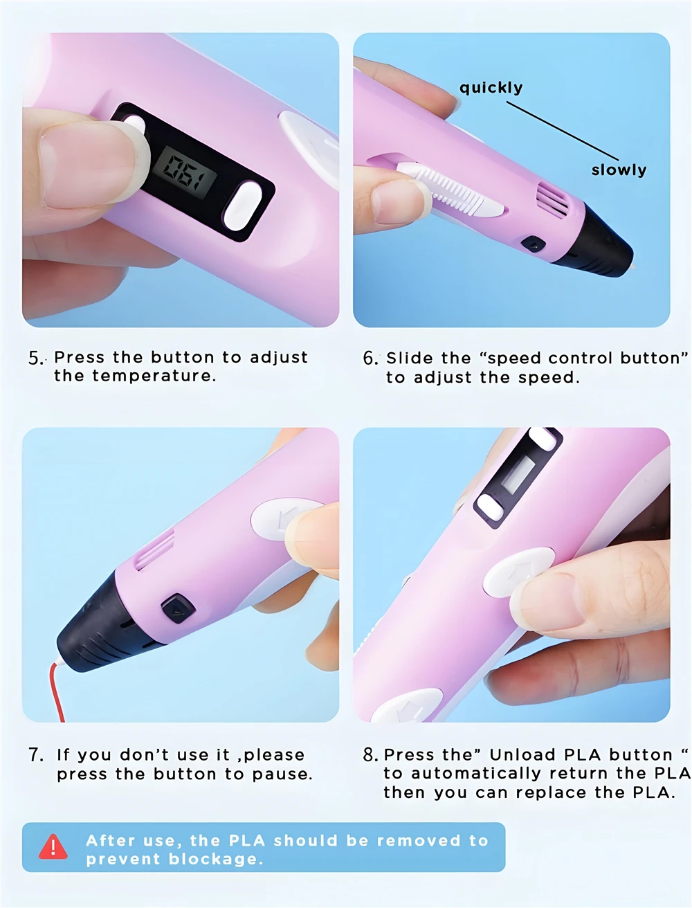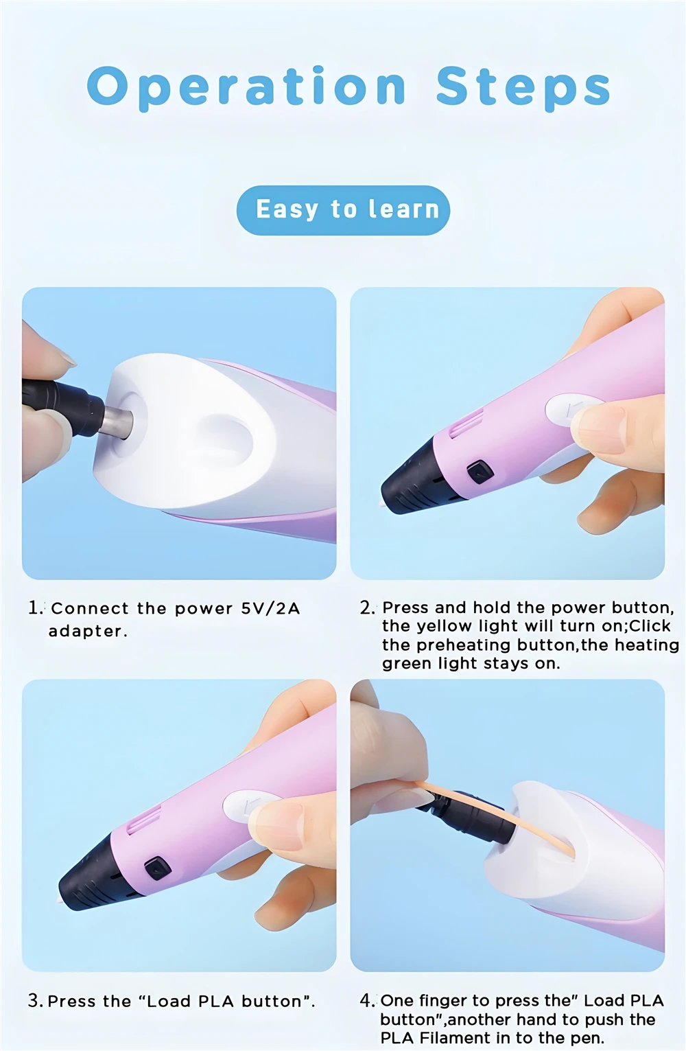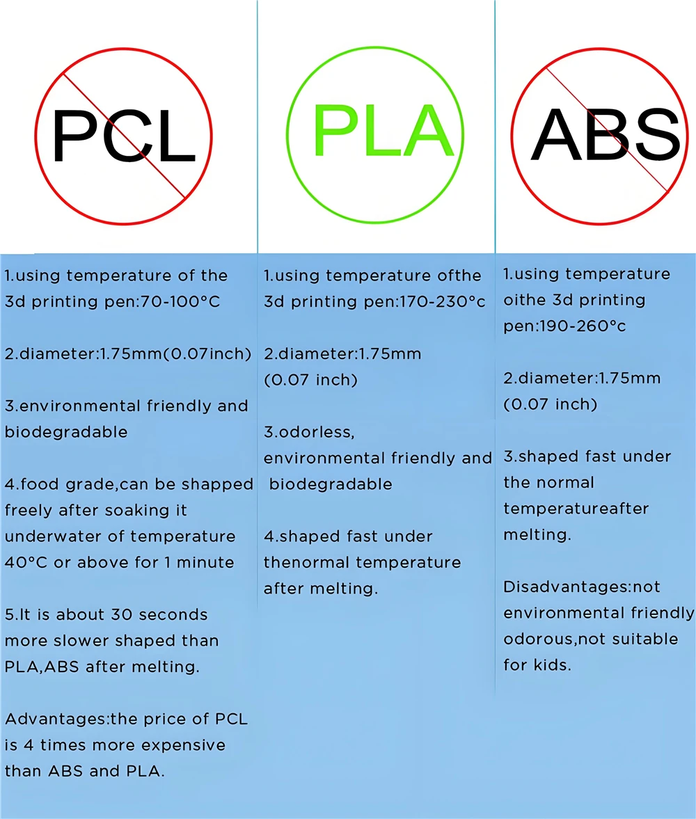 2: The second generation pen can use ABS//PLA consumables, PLA is colorless, odorless, non-toxic, healthy and environmentally friendly;