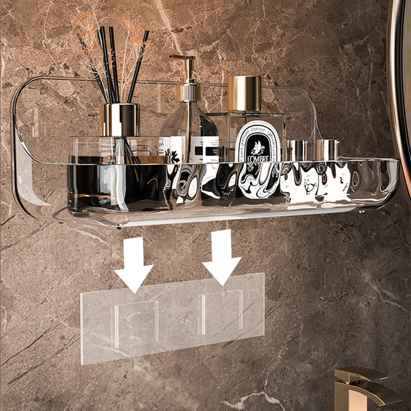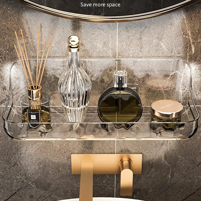 Bathroom Shelves Wall Mounted PET Shampoo Rack Makeup Storage Holder Punch Free Kitchen Organizer Shelf Corner Shower Caddy