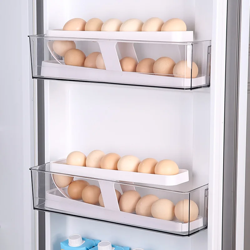 Double Layers Egg Storage Box Refrigerator Automatic Rolling Slide Egg Rack Refrigerator Side Door Freshness Box Kitchen Storage - Zecs shopping