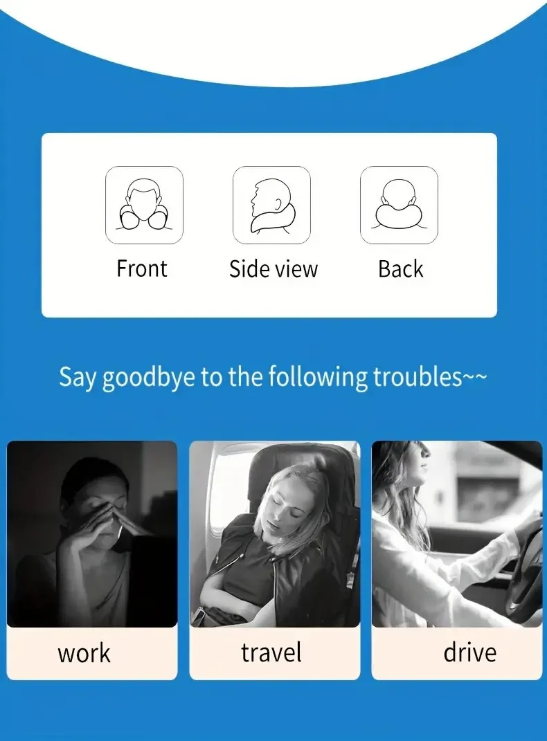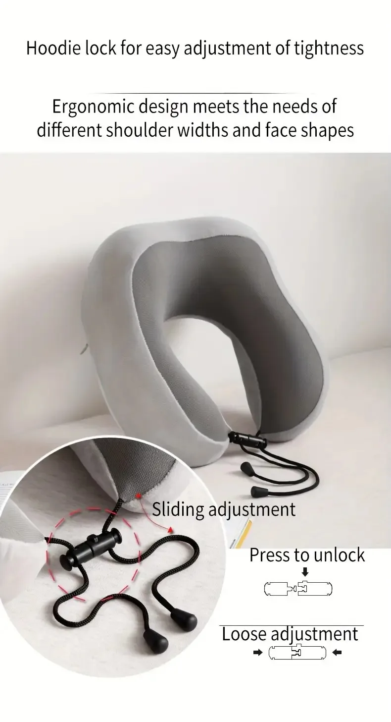 Ergonomic Memory Sponge U-shaped Travel Pillow - Adjustable Double sided Neck Support Pad Suitable for Comfortable Sleep on Pl